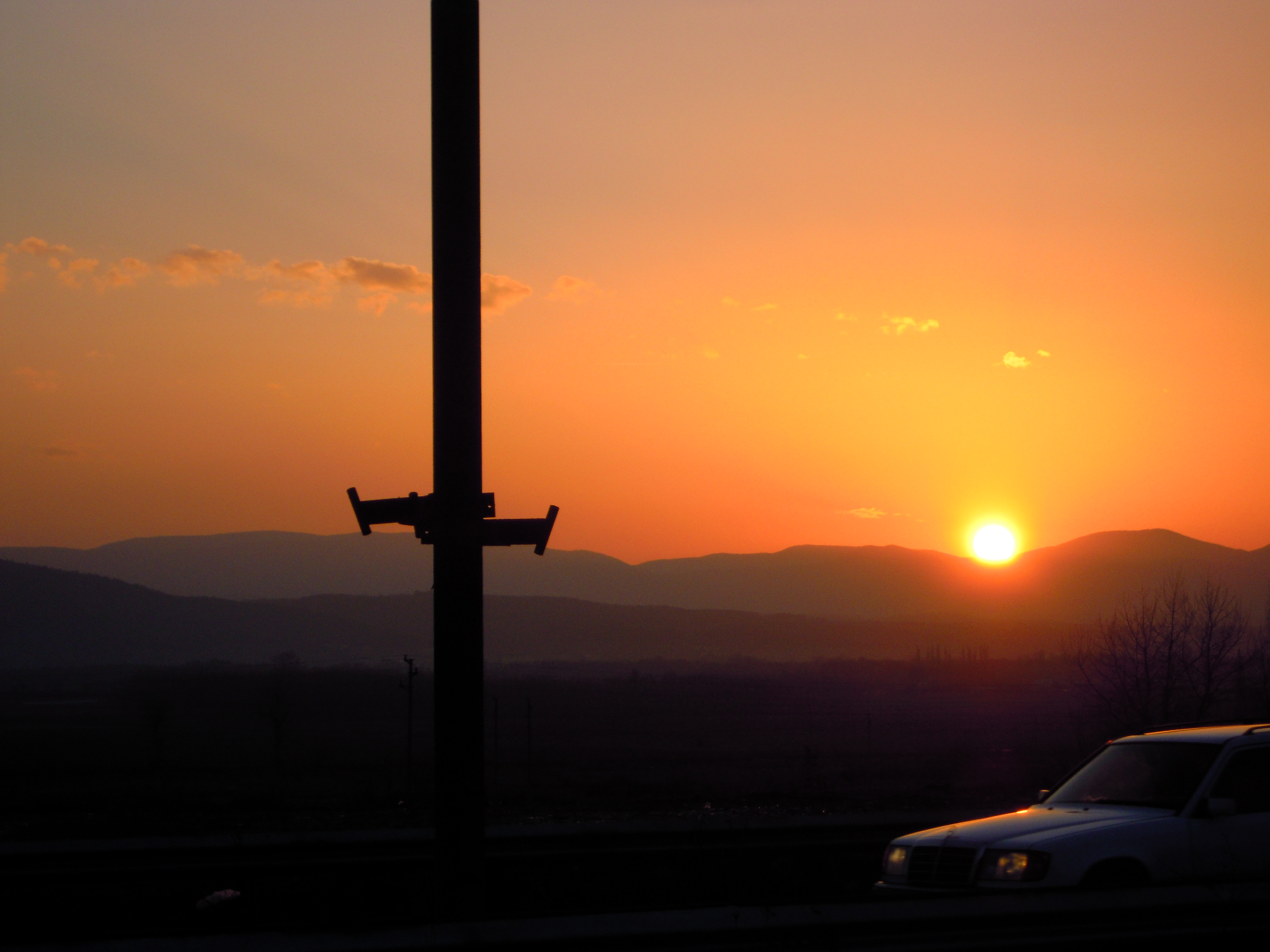 J’me suis senti comme le gentil autostoppeur qui monte dans la chevy du Dr Gonzo, anglais, sans son avocat. Je lui ai dit que c’était une proposition qu’il avait à prendre en considération mais que ça allait. Je pensais avoir plutôt peur en voiture, j’avais toutes les raisons pourtant. Ce mec sortait d’un weekend de 4 jours ou il avait fait que de boire du whisky et pas dormir mais il devait rentrer chez lui à Sofia pour bosser. Conduite catastrophique, j’ai eu raison de m’acheter un paquet de clope à la station-service. Il s’arrêtait souvent pour poser sa tête contre le volant et arrêtais pas de me répéter que Plovdiv était pas sur la route. Je lui disais que si, enfaite c’est moi qui me trompais mais de nom, là où je voulais aller c’était Pirdop. Aussi retardé que lui j'étais. J’ai fait le changement de destination dans ma tête mais lui a eu du mal. Il c’est arrêté au milieu d’une intersection, m’a suggéré de descendre parce qu’il voulait aller à Sofia en passant par Ploviv, sa ville natale et sa serai plus court car y aurait une autoroute donc on passerai plus par Pirdop, mais il voulait pas me laisser tout seul ici et voulais arriver le plus vite à Sofia, enfin plein d’incohérence. Je lui ai fait voir la carte et comprendre que c’était mieux de suivre Sofia pour aller à Sofia. Finalement j’ai pris le gros volant de sa BM et l’ai laissé dormir. Roulé à fond avec de grands dépassements un peu dangereux mais il a complimenté ma conduite dès qu’il en a eu l’occasion.