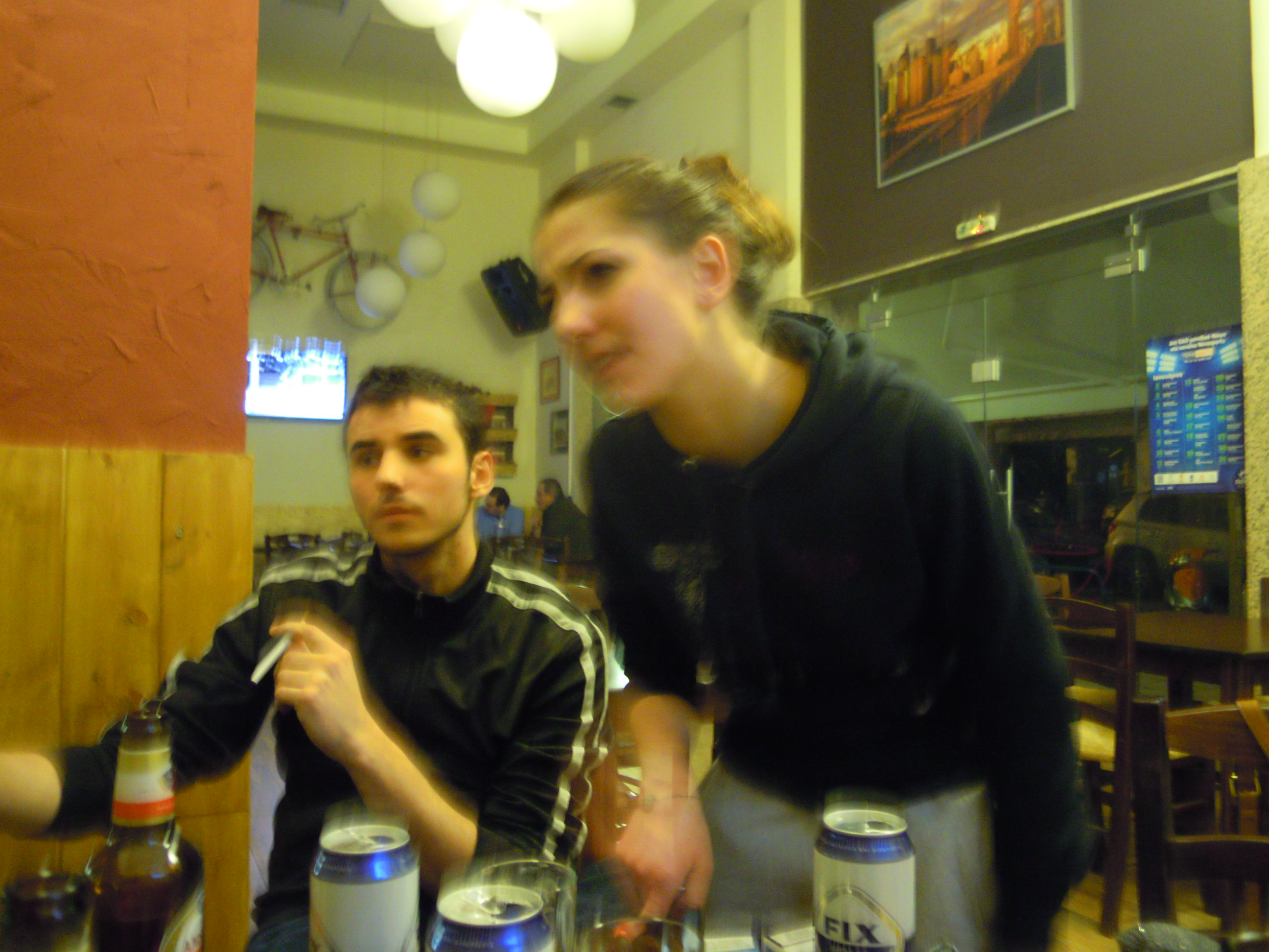 Putain j’en ai rempli la cuisine ! En tous cas j’en parlerai peut être demain avec lui ou peut-être même avec elle mais c’est clairement pas mes oignions et même si j’aimerai aider j’ai aucune vocations à me mêler à une quelconque question de relation conjugale, c’est même un peu ce que je fuis. Et j’y pense, bien sûr, si je rentre en France et deviens un peu plus sérieux, mais putain il va me FALLOIR une meuf. Sinon je n’évolue pas. J’ai bien le gout de rester une semaine chez Birce, ou plus, enfin de voir comment ça se passe. Julie et Pierrine se sont adjointe au voyage d’Istanbul, au bar j’ai rêvé ouvertement qu’ils soient un tout petit peu plus nombreux et qu’on se loue une maison pour deux semaines. Enfin on verra comment on se débrouille, je vais pister et je n’en suis pas la de toutes façons. Je vais partir jeudi matin aux météores et prendre une chambre d’hostel pour la soirée, je verrai quand je me promène dans les pythons rocheux. Puis weekend à Athènes, je sais pas si les playgrounds pourront me loger mais je ferais des requêtes CS demain. Je voulais me barrer demain matin mais bon. Aris ! C’était cool de faire ce match, c’était une petite équipe en face et le lundi soir, et le jeu de l’équipe favorite de thessa et de toute la grèce était aussi bourru et engagé que leurs supporters enragées.