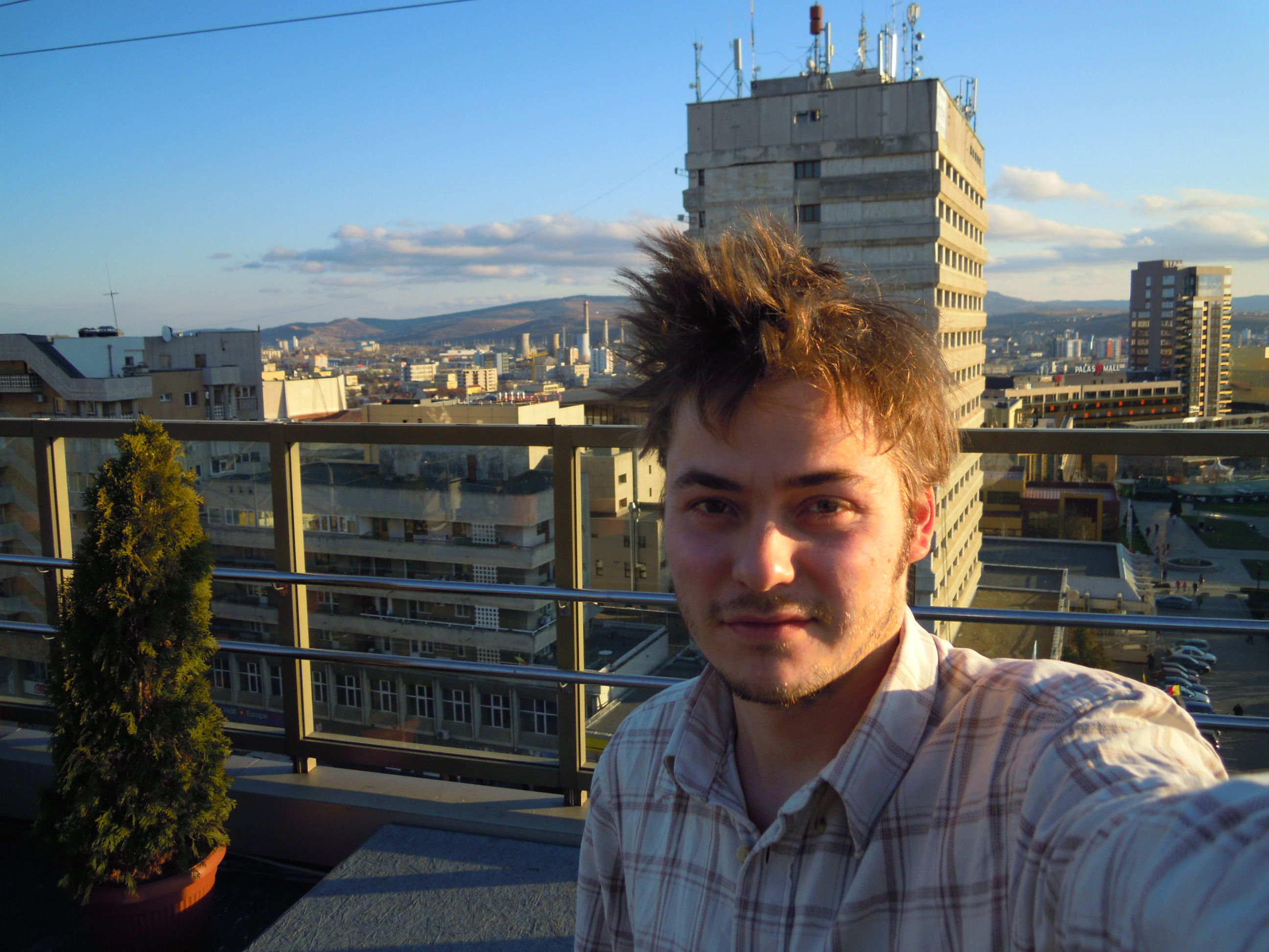 Retour au Arthouse, une grande terrasse rooftop pas loin du palais, au sixième étage du centre commercial Moldovia. J’ai lu l’histoire intéressante de cette région/pays située pile entre l’axe du mal Roumain et l’URSS pendant la guerre, puis annexé par l’URSS et côtoyant le communisme de Chauchescu, puis entre le communisme reminscent venue des russes et l’occidentalisation européenne de la Roumanie jusqu’à aujourd’hui. J’aurai aimé y aller mais c’est pas sur la route. Je suis donc hébergé chez Voica, on c’est retrouvé ici même hier pour une séance de cinéma, l’armée des 12 singes, un film de sciences fiction bien 90’s pas mal ficelé. Y’avais un concert de jazz qui avait l’air cool quand on est sorti de la salle mais on est pas resté car la fumée de cigarette dérangeais le métaleux avec qui on était. Le geek à son paroxysme. On a fait deux bar ou y’avais toujours trop de fumée de cigarette et on a atterri dans le nid, cuib en roumain, bar bio écolo contre le capitalisme vert, et donc non-fumeur.